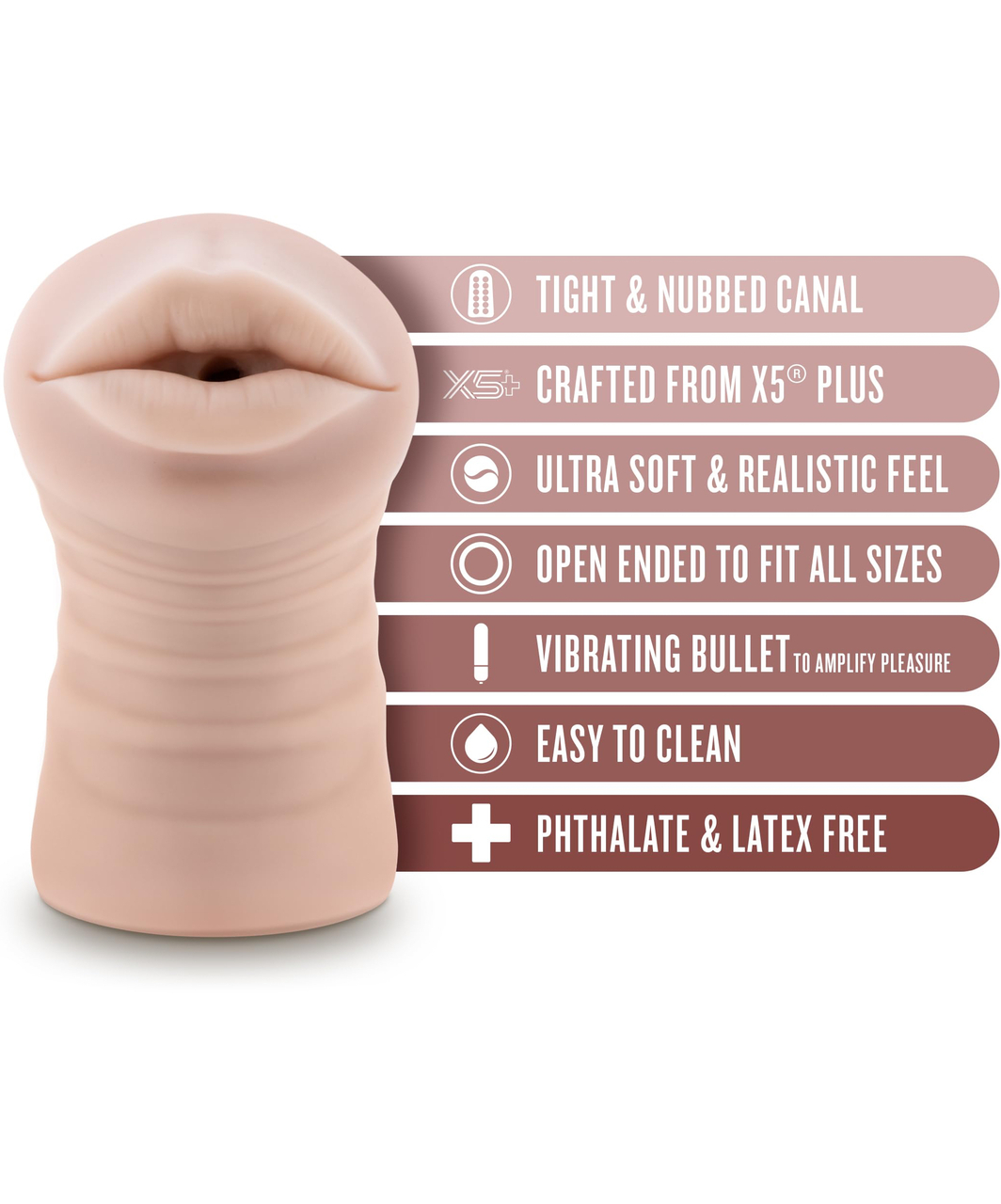 Stretchy, portable male stroker made of ultra-soft, lifelike material X5+. Designed to deliver a supreme level of softness that will transcend your sexual experience to new realms, this masturbator features a snug and nubby inner canal, and also a mini vibe that allows you to amplify pleasure. To fully immerse yourself in erotic bliss, scan the QR code you’ll find inside the box and meet our voluptuous Nicole – an AI-imagined girlfriend of your dreams. Her extensive portfolio offers guided fantasies to elevate your experience.