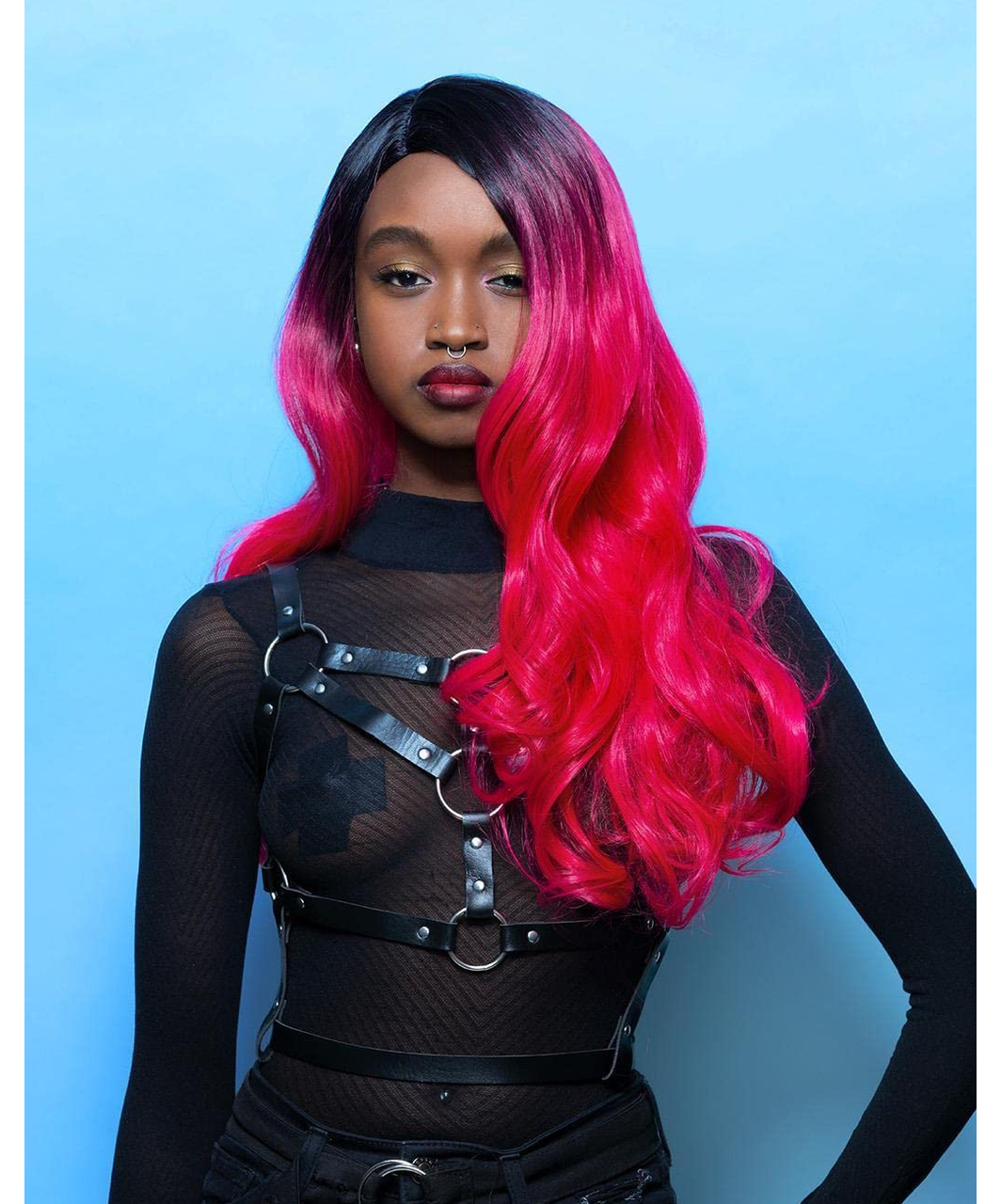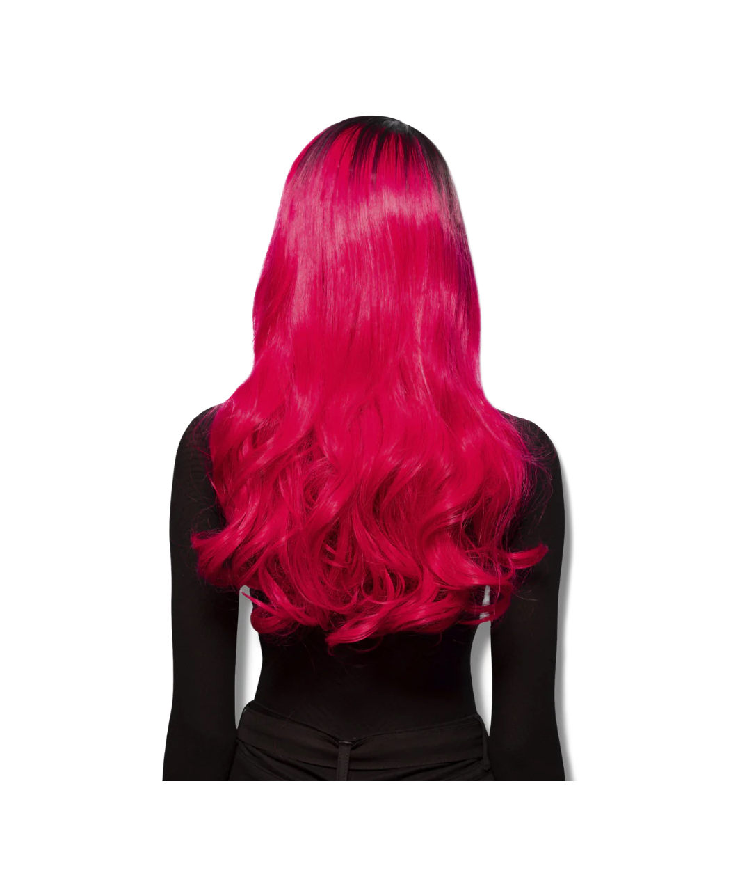 Manic Panic Cleo Rose Queen Bitch is fuchsia and black ombre wig with long drop curls and side parting. Professional quality synthetic wig that is made from heat resistant material and is heated styling tool compatible.