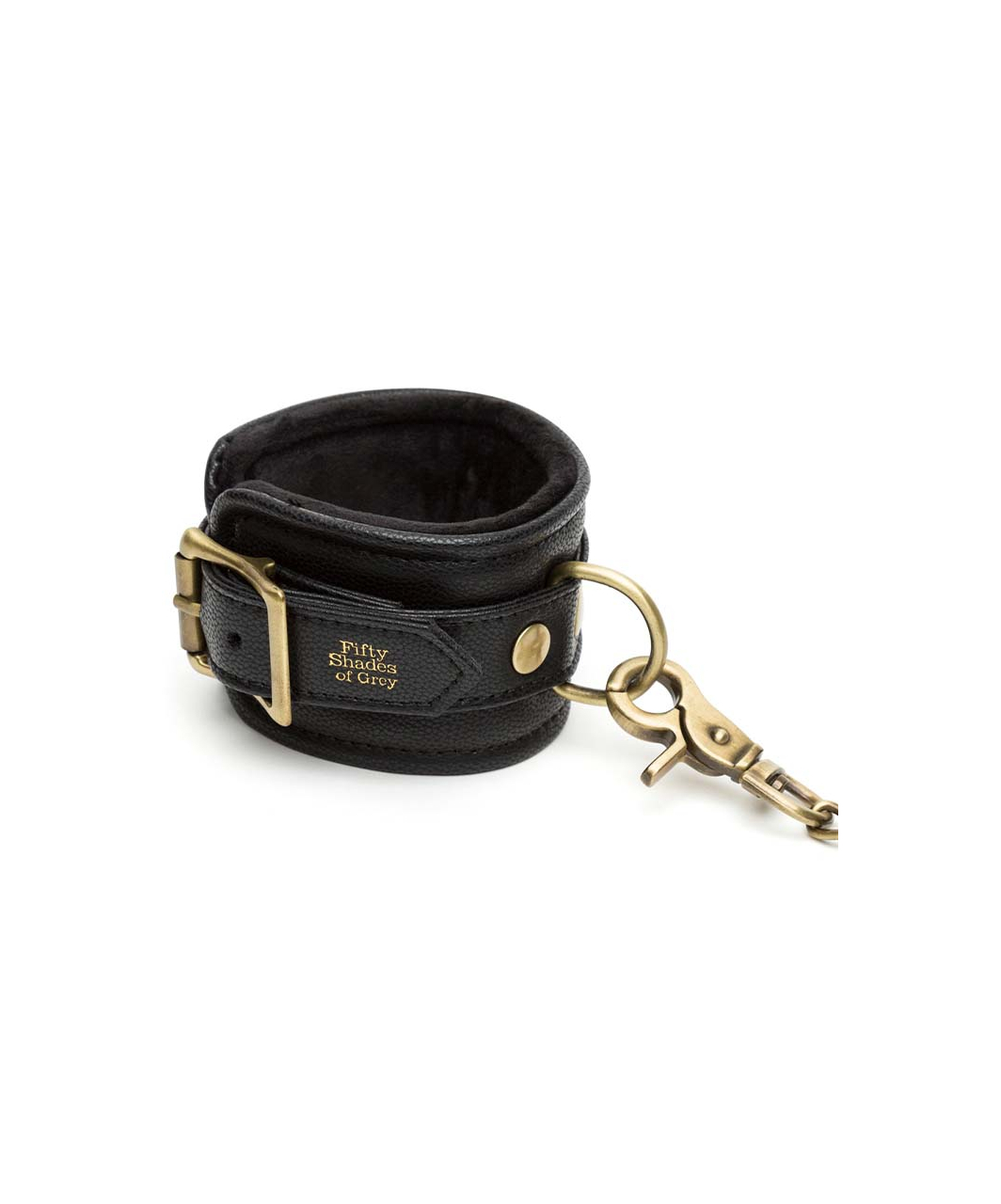 Create your own Fifty Shades mise en scène with these exquisite ankle cuffs. Exceptionally comfortable with sumptuous padding and a soft, furry lining, these faux leather cuffs are finished in antique gold for opulent Ana-and-Christian-inspired play.