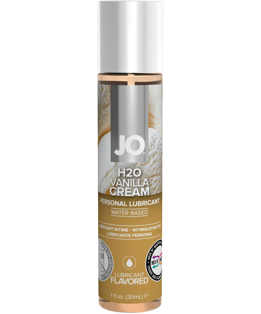 Cherry$ 11,67JO® H2O Flavored is a water-based personal lubricant for penile, anal and/or vaginal application, intended to lubricate and moisturize, to enhance the ease and comfort of intimate sexual activity and supplement the body’s natural lubrication. This product is compatible with natural rubber latex and polyisoprene condoms. This product is not compatible with polyurethane condoms.