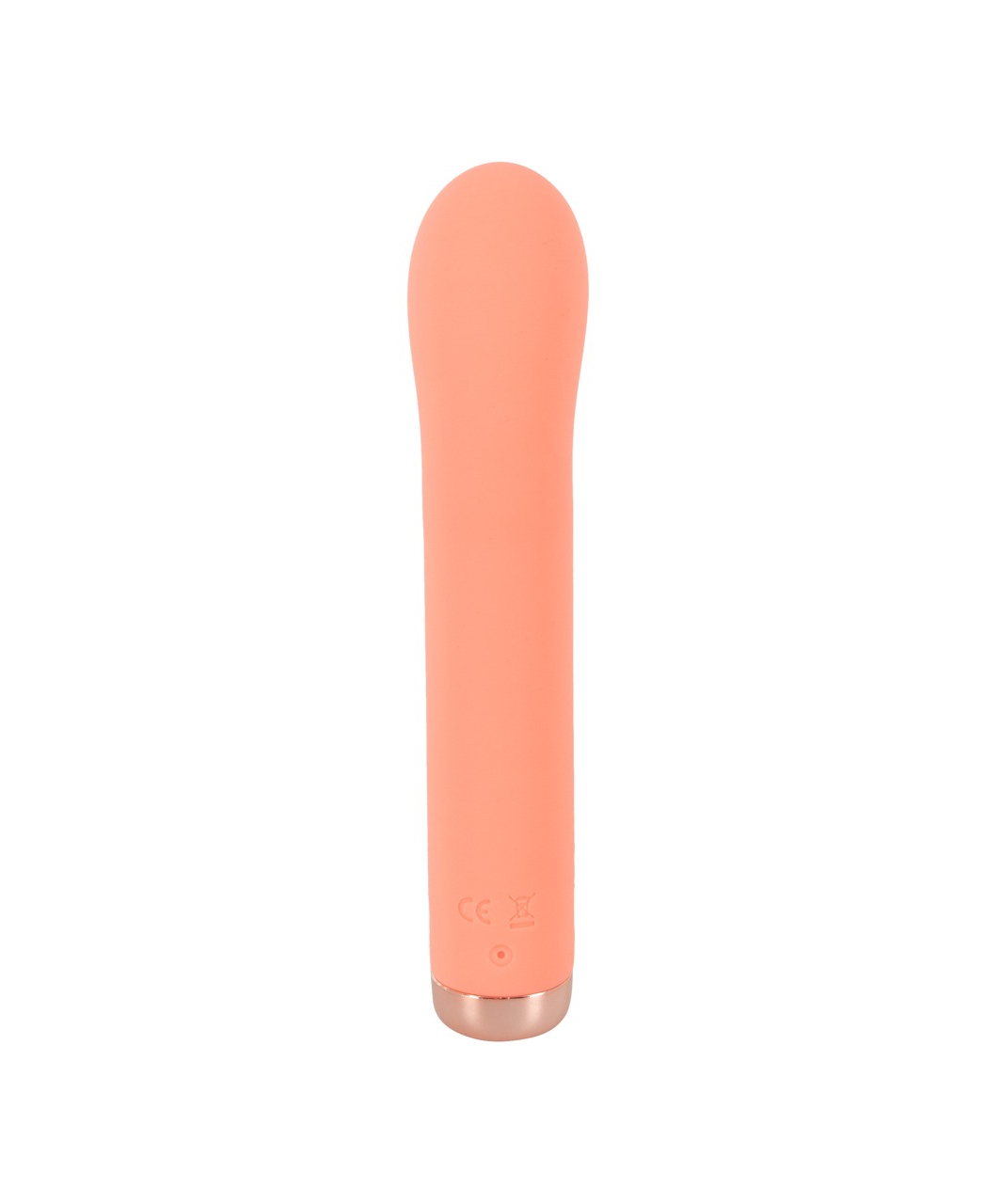 Pastel orange flexible vibrator for a G-spot stimulation. Silky-smooth and curved bulbous tip complemented with 10 vibration modes – 3 intensities and 7 rhythms – will make your climax ohh so peachy!