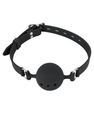 Black gag with breathing holes and adjustable strap. Material: silicone.