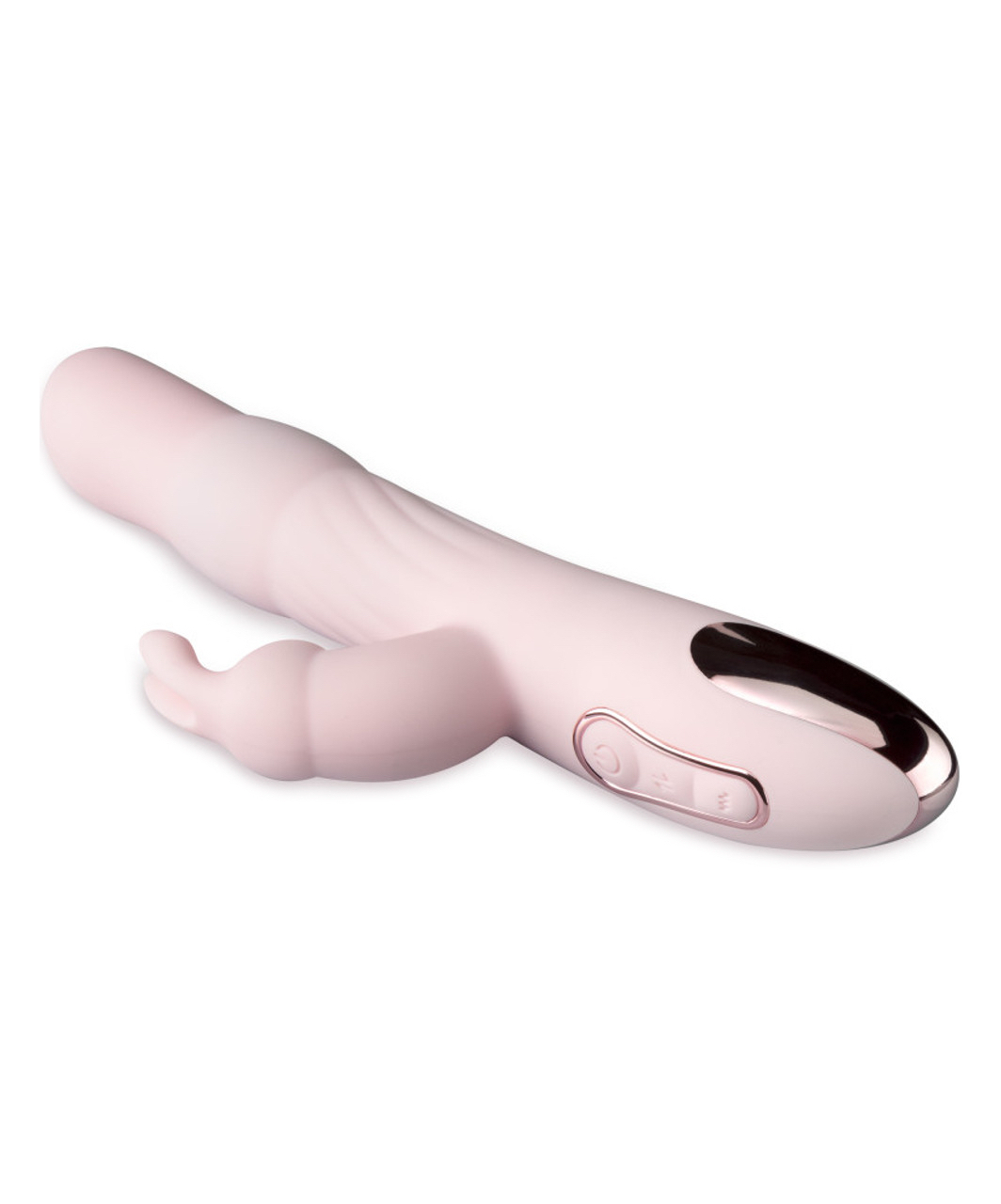 Light pink, silky smooth and body-friendly silicone vibrator with rotating beads and a vibrating tip, also with a clitoral vibrator in the shape of a cute bunny. The rotating pearls has 5 stimulation intensities and you may enjoy 10 vibration types – 4 intensities and 6 rhythms – in the clitoral vibrator. Try it also in the bath or shower as the toy is completely waterproof.
