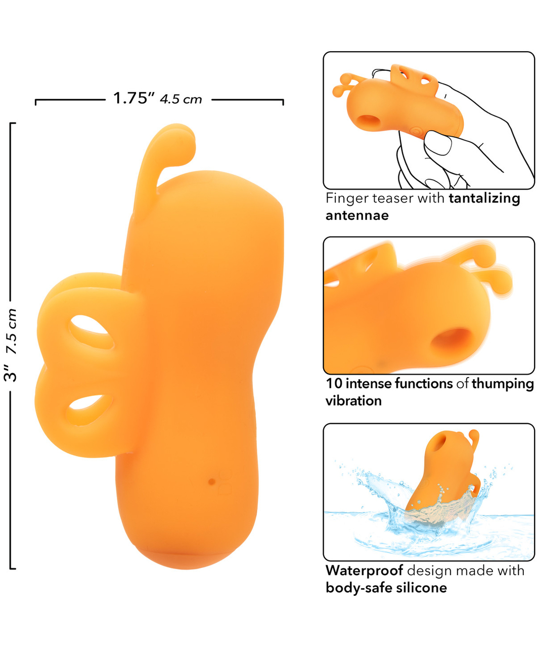 See neoonoranž beeesy abimees on siidiselt pehmest ja kehasõbralikust materjalist valmistatud sosinatähega sõrmevibraator. Ergonoomilise, alamõõdulise ja armas mesilase disainiga ning 10 režiimiga pulbitsev vibratsioon pakub The Buzzing Vibe intensiivset kliitori naudingut. Disainitud teie elustiili silmas pidades, on sellel mälukiip, mis jätkab viimati kasutatud vibratsiooni ja reisilukk, mis tagab liikvel olles diskreetsuse. Vibraator on veekindel, tagades, et lõbu ei tunne piire.