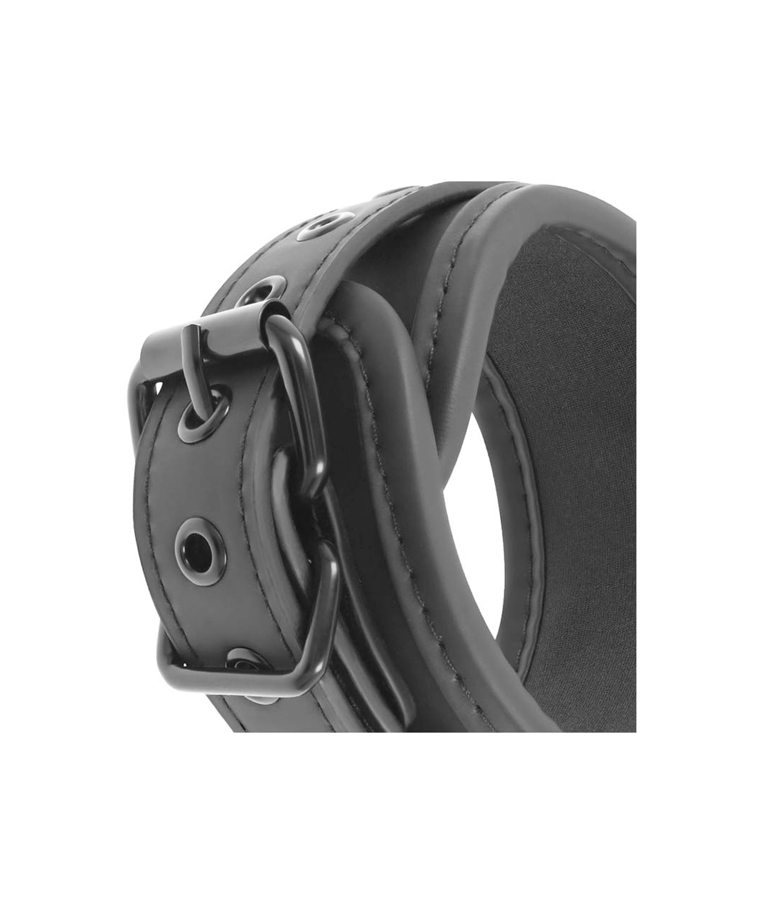 Musta kunstnahast reguleeritav krae ja randmepaelad, mis on ühendatud kettide ja kinnituskonksudega.