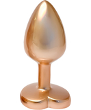 Pärlmutterjas aprikoosjas anaalpistik, millel on südamekujuline alus, mida kaunistab teemantlihvitud hõbedane läbipaistev kunstlik kalliskivi.