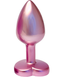 Heleroosa pärlmutterhõnguline anaalpistik, millel on südamekujuline alus, mida kaunistab rombikujuline hõbedane läbipaistev kunstlik kalliskivi.