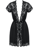 Must negližee satiinlehviga, lühikeste pitsist varrukatega ja pitskaunistustega.