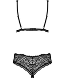 Imeline kaheosaline komplekt, mis on valmistatud mustast viimistletud pitsist – pehmete korvidega rinnahoidja ja sobivad püksikud. Õlapaelad ja kinnitus on reguleeritavad.