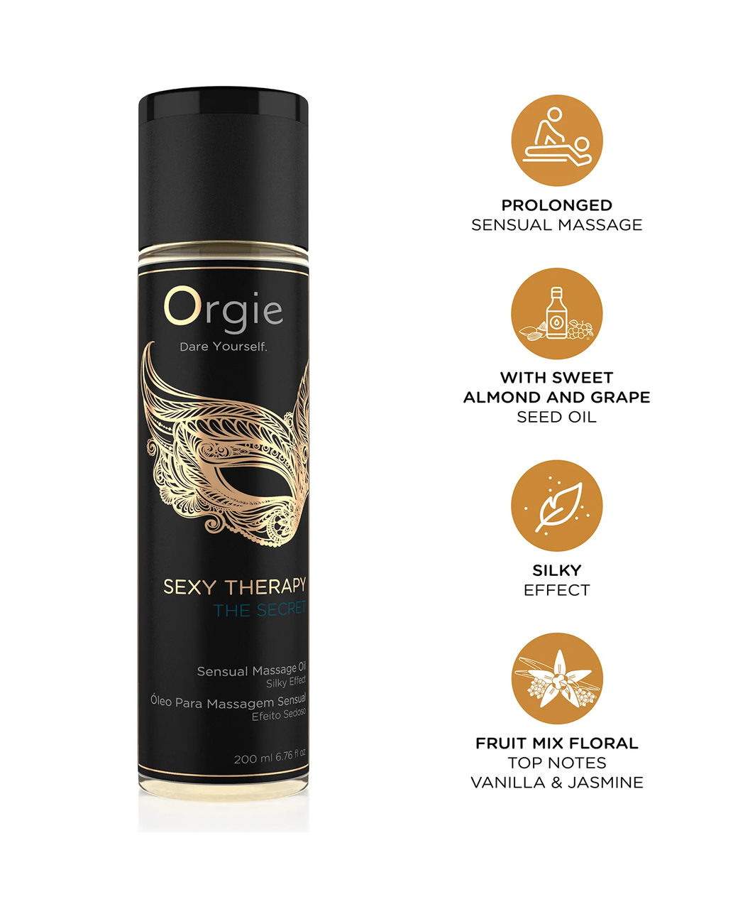 The Secret31,95 € Need ahvatlevate aroomidega immutatud massaažiõlid jätavad teie naha pärast sensuaalset massaaži siidiselt pehmeks. Valige soovitud lõhn ja avastage sügavad tunded armulisest hellusest.