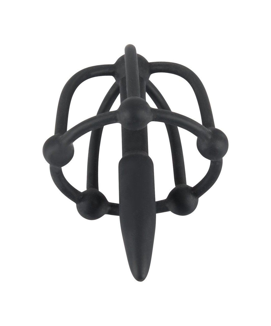 Paindlik peenisetapp/spermastopper, millel on peenisepea puur ja stimuleerivad helmed.