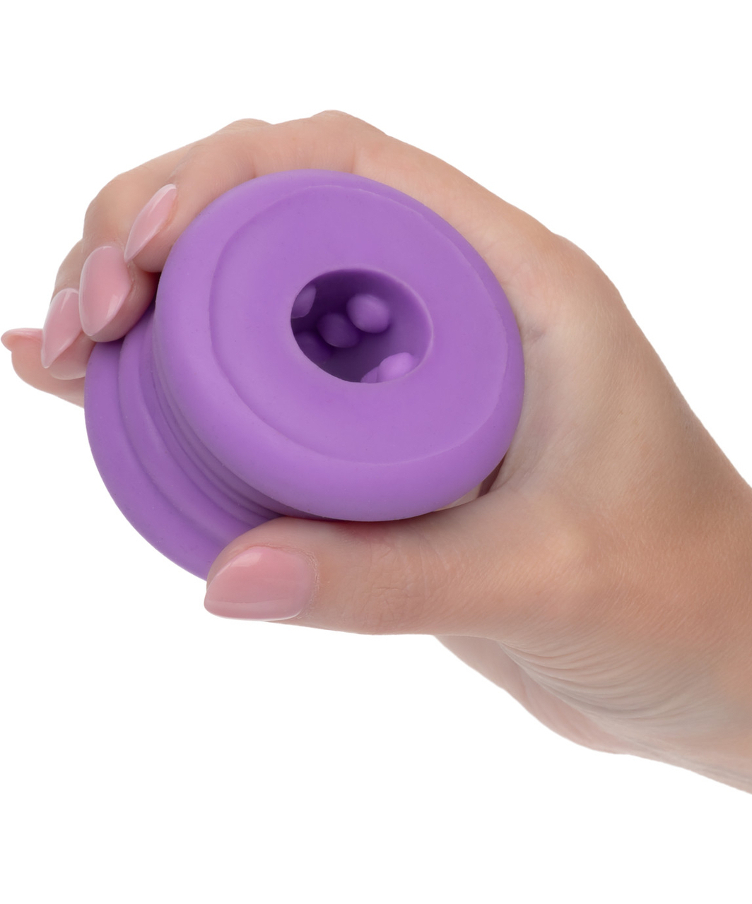 Erittäin pehmeä, mutta kestävä nestemäinen silikoni stroker, jota voidaan käyttää sekä suihinottosimulaattorina että työntöpuskurirenkaana tunkeutumissyvyyden rajoittamiseksi. Se on erittäin venyvä ja tuntuu ihanan joustavalta kosketettaessa ihoa - voit käyttää sitä myös kivespussin venyttimenä, joka saa aikaan vetävän tunteen ja pitkittyneen orgasmin. Siinä on myös stimuloivia nuppuja sisällä ja se hehkuu pimeässä.