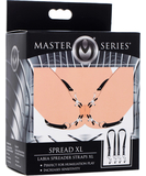 Labian laajennin, jossa on leikkeet, jotka on liitetty tekonahkahihnoihin. Hihnat kiertyvät reisien ympärille; pituus on säädettävissä soljella. Klipseissä on mustat kumikärjet.