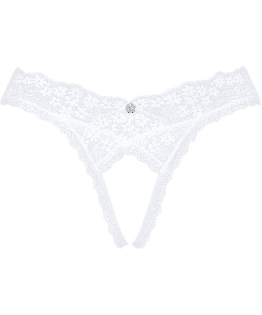 Valkoinen pitsinen stringi.Kangas: 90 % polyamidi, 10 % elastaani.