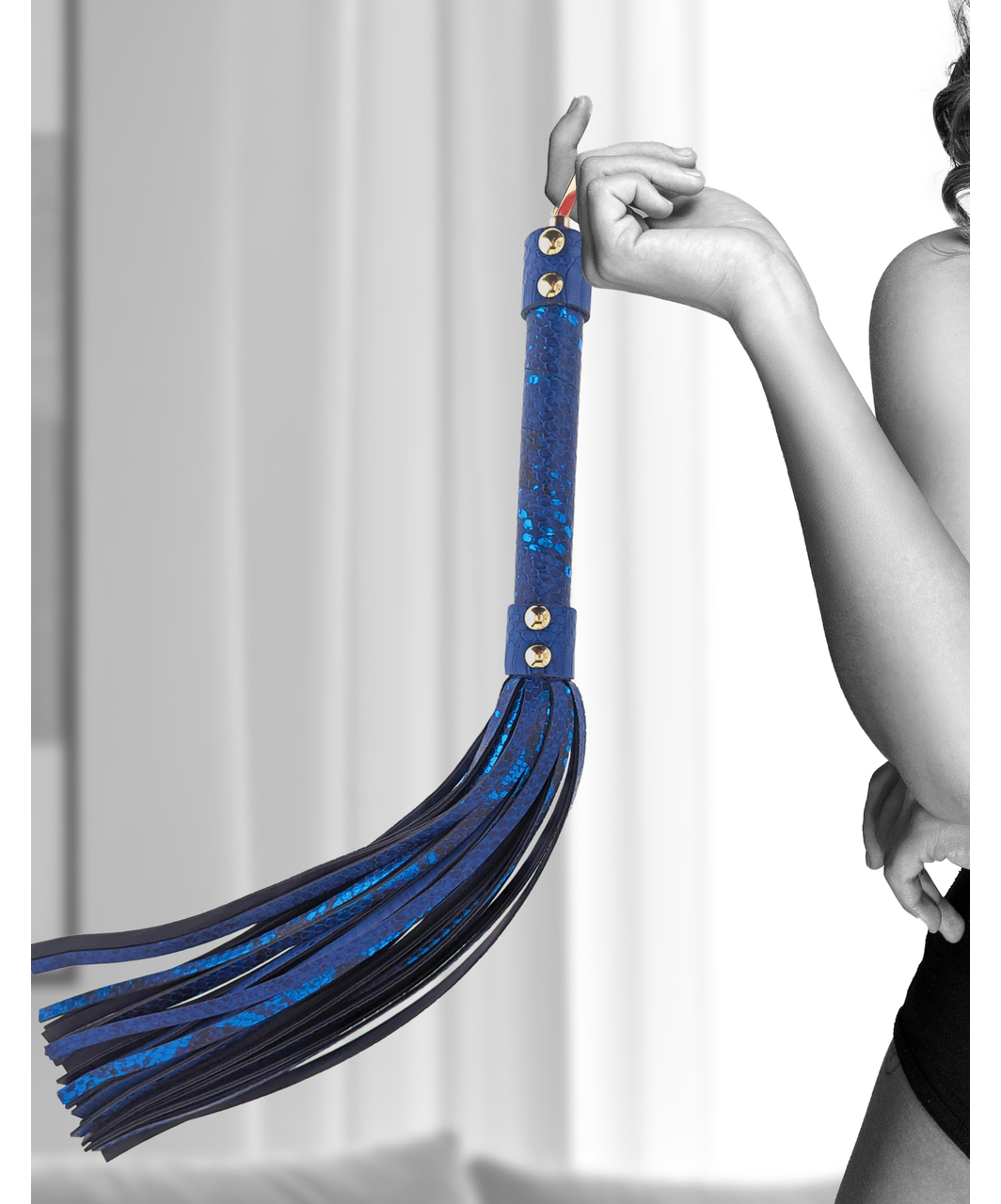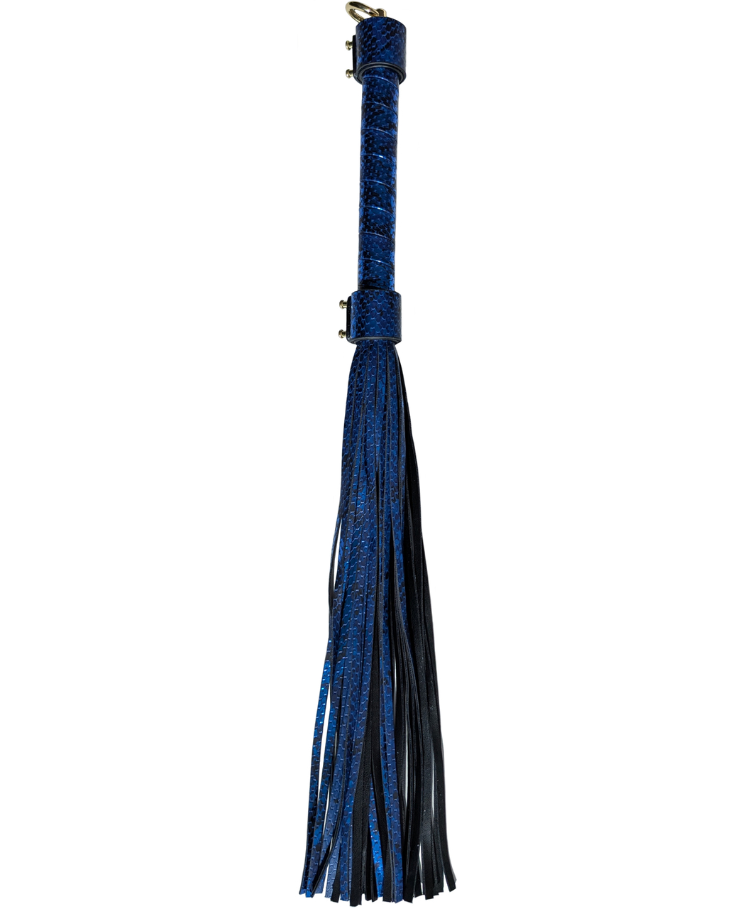 Pehmeä keinonahkainen ruoska, jossa on uritettu kahva - osa hienoa Florence-mallistoa, jossa on pehmeää, kuvioitua keinonahkaa ja kullanvärisiä metalliosia.