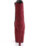 Burgundinpunaiset mokkanahkaiset avokärkiset nilkkurit, joissa on korkea koroke, stilettokorko, mikrokuitupohjallinen ja sisäpuolinen vetoketju.