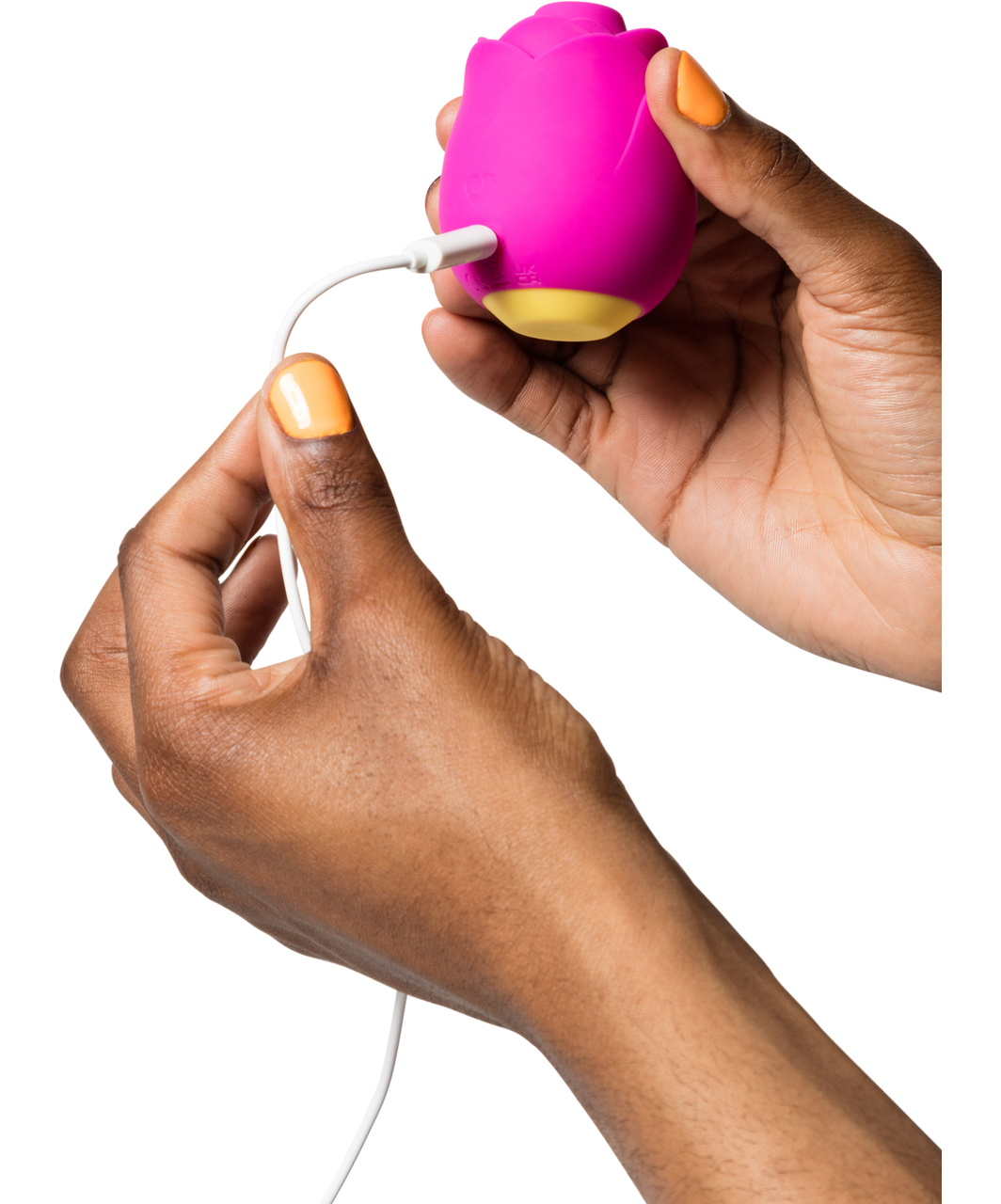 Pleasure Air -teknologian klitorisstimulaattori vaaleanpunaisen ruusun silmun muodossa. Ilahduta rakastajaasi tai hemmottele itseäsi tällä huomaamattomalla kämmenen kokoisella alkuperäisellä Pleasure Air Technology -lelulla, joka hyväilee klitorista 6 intensiteetillä ja 4 kuviotilalla; valmistettu silkkisestä, kehoystävällisestä silikonista. Se on täysin vedenpitävä, joten muista kokeilla sitä kylvyssä tai suihkussa. Lelussa on matkalukitustoiminto, joka takaa sen turvallisen kuljettamisen matkoilla - paina molempia painikkeita ja pidä niitä painettuna 3 sekunnin ajan kytkeäksesi lukitustoiminnon päälle ja pois päältä.