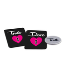 Heitä mukana tulevaa Totuus tai tehtävä -merkkiä, jotta voit päättää, minkälaisen kortin vedät. TRUTH-kortilla saat pisteitä vain rehellisestä vastauksesta - mitä yksityiskohtaisempi, sitä parempi. DARE-kortilla saat pisteitä täyttämällä provosoivan haasteen. Kunkin kortin herttojen määrä määrittää, kuinka monta pistettä voit ansaita.