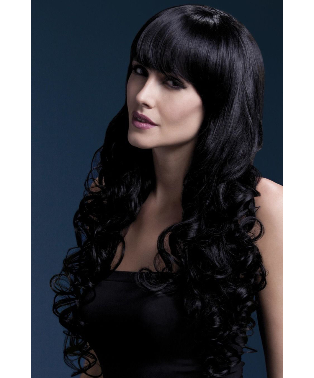 Ilgas (≈ 66 cm) juodų garbanotų plaukų perukas su plunksniškais kirpčiukais. Profesionalus kokybiškas sintetinis perukas, pagamintas iš karščiui atsparios medžiagos, tad jo priežiūrai galima naudoti kaštus šukuosenos formavimo įtaisus.