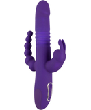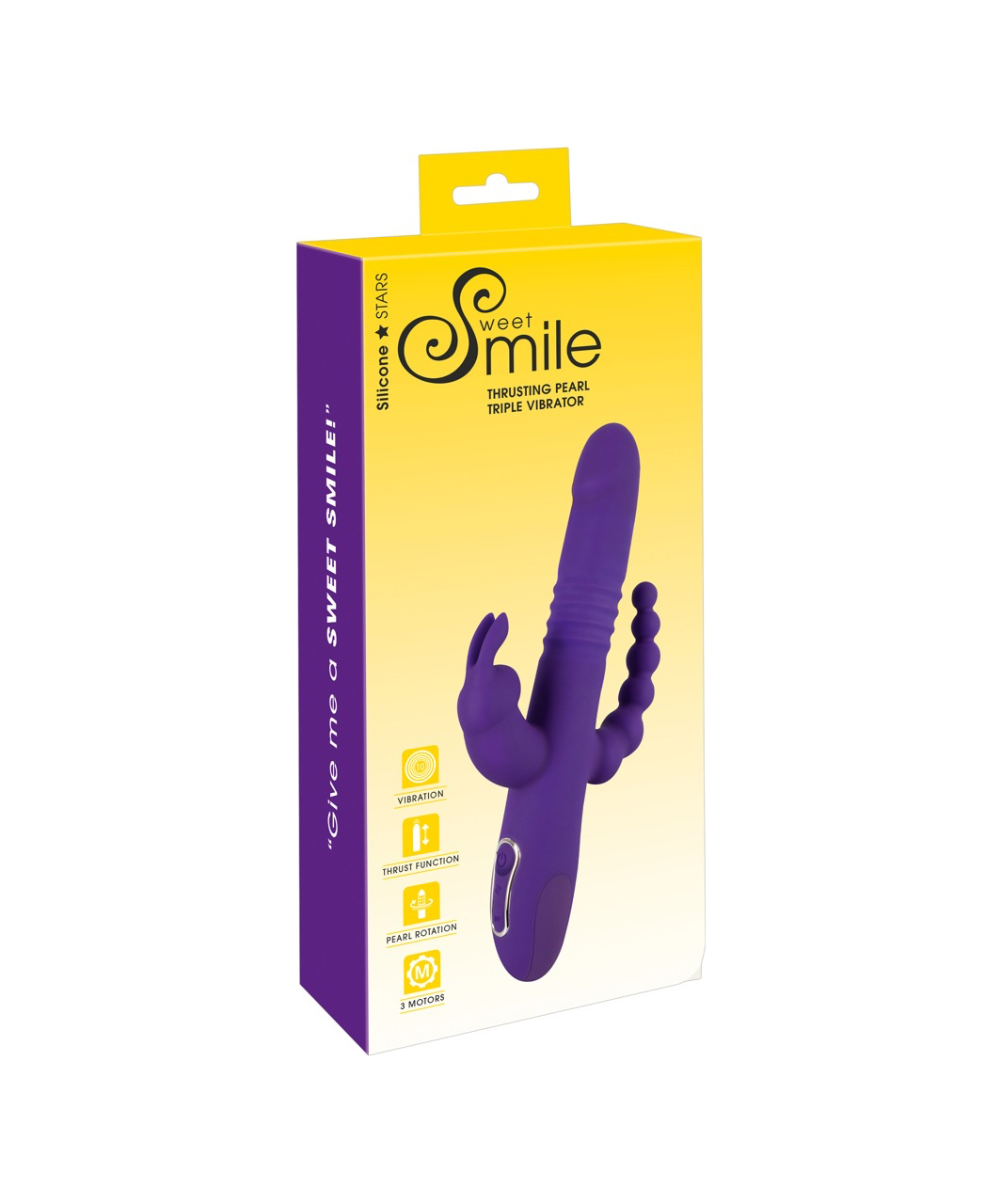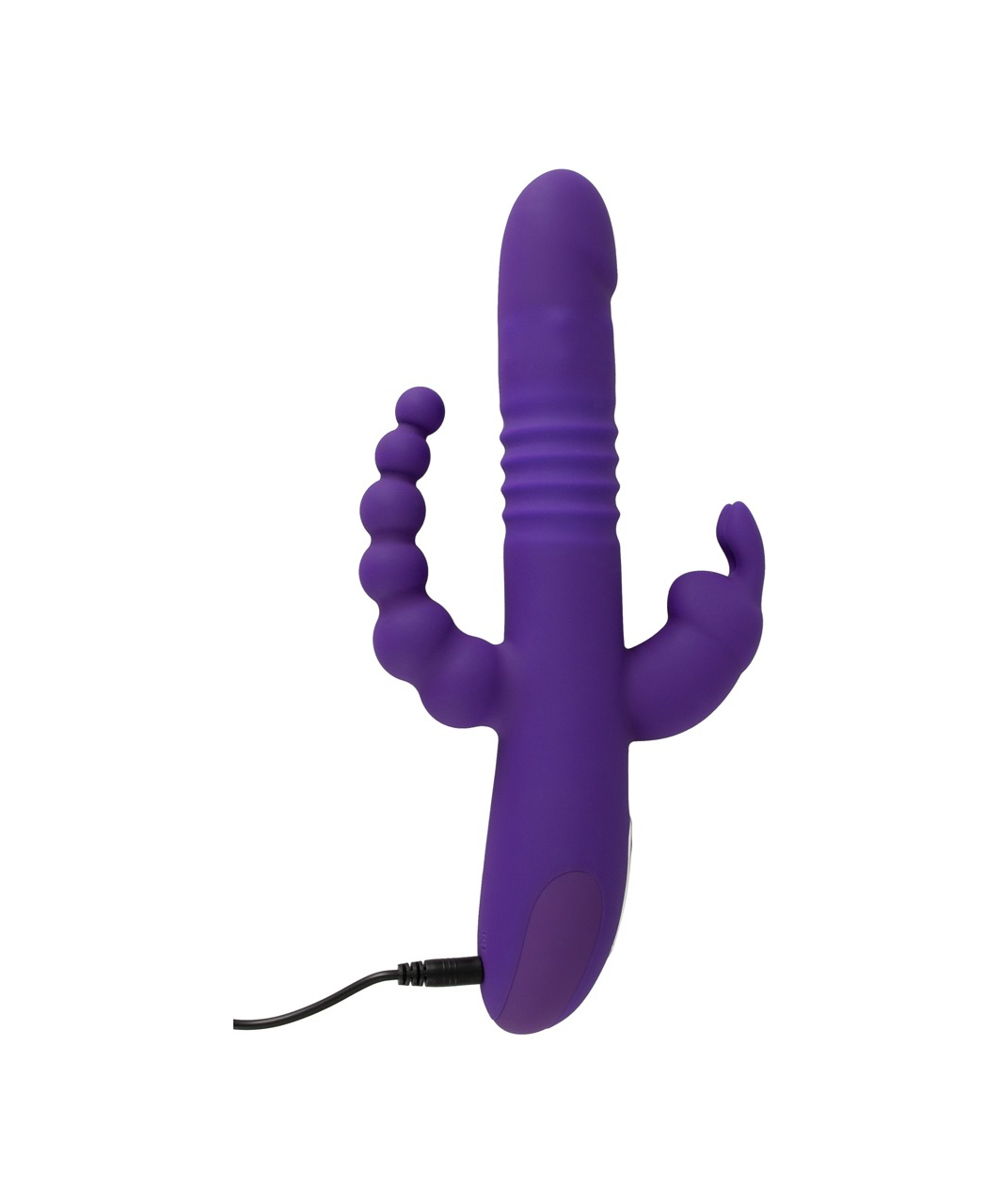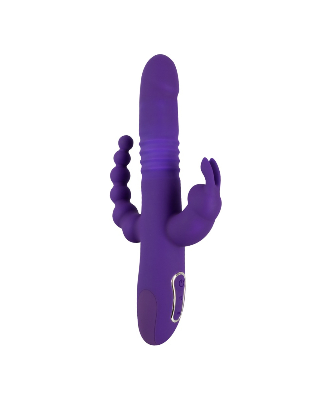 Šis violetinis iš šilkinio lygumo ir kūnui nekenksmingos medžiagos pagamintas vibratoriaus skirtas trigubai stimuliacijai. Sujunkite analinę, makšties ir klitorio stimuliaciją į vieną žaislą! Triušio formos klitorio kutenimo įtaisas ir lankstūs pradedantiesiems tinkantys analiniai karoliukai turi 10 skirtingų vibracijos režimų – išbandykite juos. Nors įkišama vidurinė dalis masažuoja makštį besisukančiais perlais, galite rinktis 3 intensyvumus pagal savo pageidavimus. Vibracijos ir penetravimo / sukimo funkcijas galima valdyti atskirai. Šį vandeniui atsparų žaisliuką galima naudoti ir lovoje, ir duše ar vonioje.