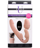 Idealiai tinka vyro ar moters kūno penetracijai, šis nuotoliniu būdu valdomas prisegamas dildo be dirželių teikia ekstremalią vibraciją ir turi pripučiamą išsikišančią makšties dalį, puikiai tinkančią jūsų kūnui. Dėl prietaiso formos viena iš partnerių gali įterpti mažesnįjį galiuką į vaginą, palaikyti jį savo Kėgelio raumenimis arba pridėti diržą papildomam palaikymui. Vis dėlto, šis unikalus prisegamas dildo be diržo taip pat turi pripučiamą išgaubtą dalį, kuri padeda užfiksuoti dildo ir sukurti didesnį slėgį.