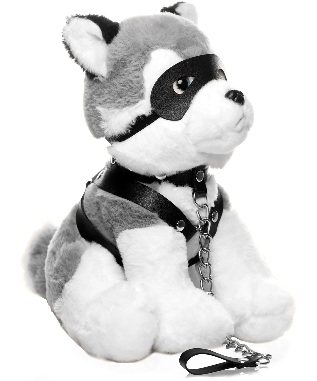Mīksta rotaļlieta puppy play cienītājiem – plīša suns pilnā fetiša ietērpā.
