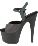 Tumži zaļas un violetas krāsas, atstarojošas augstpapēžu kurpes ar augstu, matēti melnu platformu, mikrošķiedras saistzoli un atvērtu purngalu.