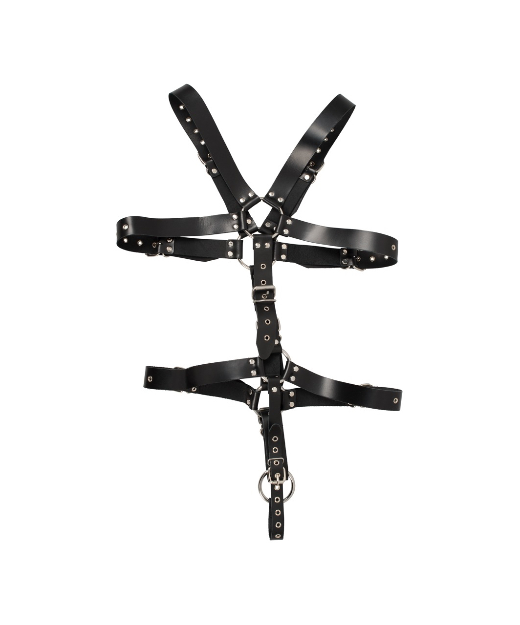 Ādas siksnu bodijs ar metāla gredzenu, kura diametrs ir 5 cm. Siksnu garums ir ērti maināms; aizdarāmas ar sprādzēm. Universālais izmērs (der no S līdz L).