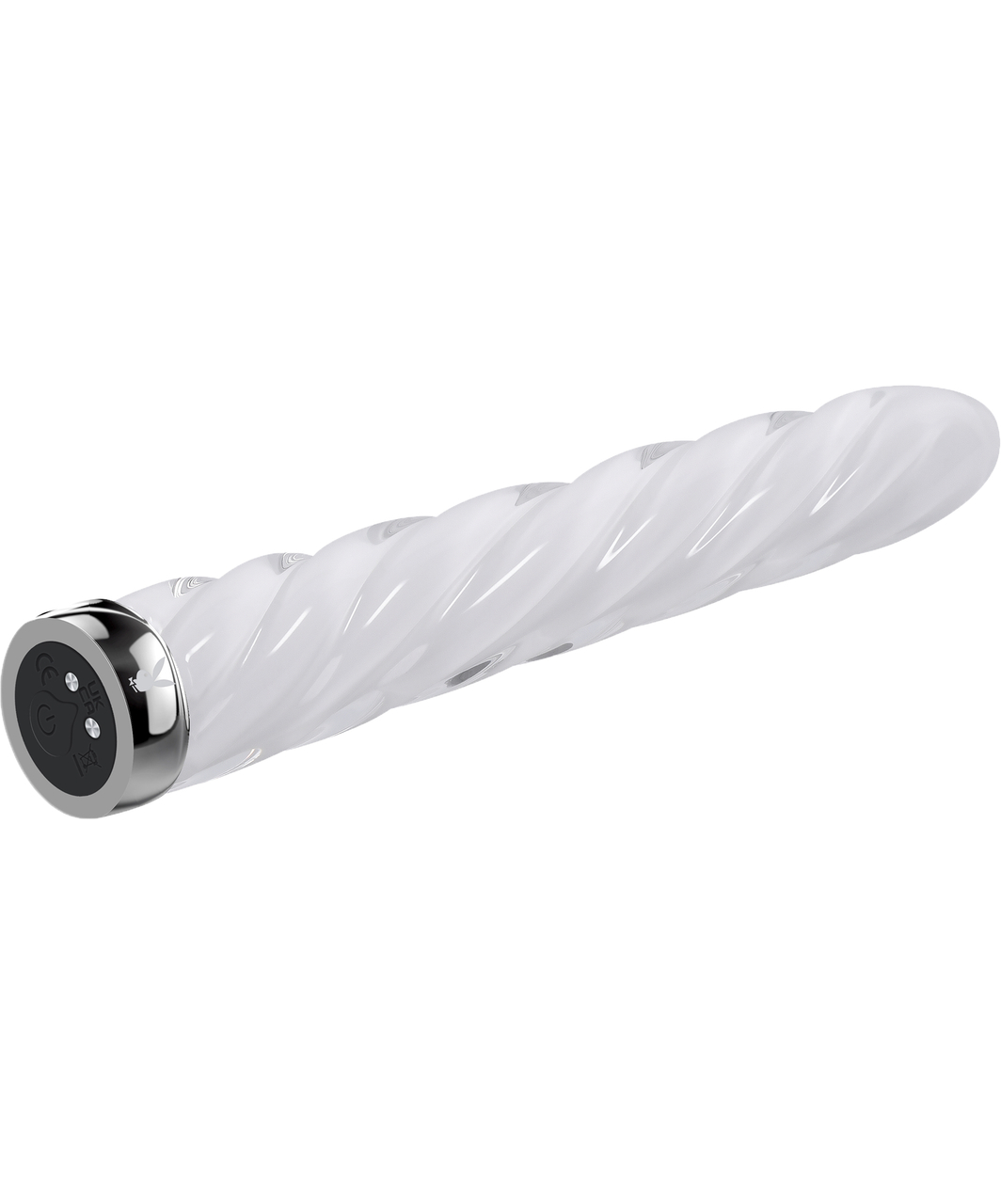 Elegancki, żłobiony wibrator wykonany ze szkła - idealny do zabawy w temperaturze: wystarczy włożyć go do zimnej lub ciepłej wody przed użyciem.